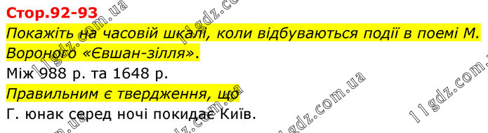 Покажіть на часовій шкалі, коли відбуваються події в поемі М. Вороного «Євшан-зілля». Між 988 р. та 1648 р. Правильним є твердження, що Г. юнак серед ночі покидає Київ.