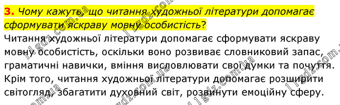 Чому кажуть, що читання художньої літератури допомагає сформувати яскраву мовну особистість? Читання художньої літератури допомагає сформувати яскраву мовну особистість, оскільки воно розвиває словниковий запас, граматичні навички, вміння висловлювати свої думки та почуття. Крім того, читання художньої літератури допомагає розширити світогляд, збагатити духовний світ, розвинути емоційну сферу.