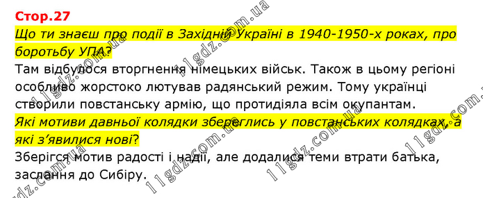 Що ти знаєш про події в Західній Україні в 1940-1950-х роках, про боротьбу УПА? Там відбулося вторгнення німецьких військ. Також в цьому регіоні особливо жорстоко лютував радянський режим. Тому українці створили повстанську армію, що протидіяла всім окупантам. Які мотиви давньої колядки збереглись у повстанських колядках, а які з’явилися нові? Зберігся мотив радості і надії, але додалися теми втрати батька, заслання до Сибіру.