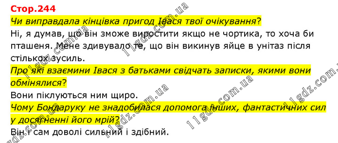 Чи виправдала кінцівка пригод Івася твої очікування? Ні, я думав, що він зможе виростити якщо не чортика, то хоча би пташеня. Мене здивувало те, що він викинув яйце в унітаз після стількох зусиль. Про які взаємини Івася з батьками свідчать записки, якими вони обмінялися? Вони піклуються ним щиро. Чому Бондаруку не знадобилася допомога інших, фантастичних сил у досягненні його мрій? Він і сам доволі сильний і здібний.