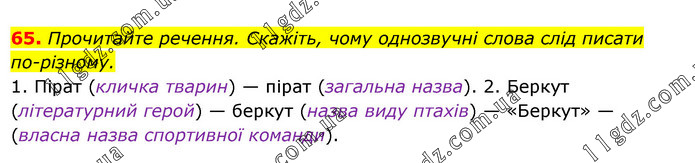 Прочитайте речення. Скажіть, чому однозвучні слова слід писати по-різному. 1. Пірат (кличка тварин) — пірат (загальна назва). 2. Беркут (літературний герой) — беркут (назва виду птахів) — «Беркут» — (власна назва спортивної команди).