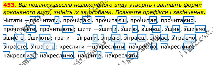 Від поданих дієслів недоконаного виду утворіть і запишіть форми доконаного виду, змініть їх за особами. Позначте префікси і закінчення. Читати —прочитати, прочитаю, прочитаєш, прочитає, прочитаємо, прочитаєте, прочитають; шити —зшити, зшию, зшиєш, зшиє, зшиємо, зшиєте, зшиють; грати —зіграти, зіграю, зіграєш, зіграє, зіграємо, зіграєте, зіграють; креслити —накреслити, накреслю, накреслиш, накреслить, накреслимо, накрите, накреслять.