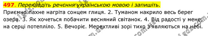 Перекладіть речєння українською мовою і запишіть. 1. Приємно пахне нагріта сонцем глиця. 2. Туманом накрило весь берег озера. 3. Як хочеться побачити весняний світанок. 4. Від радості у мене, на серці потепліло. 5. Вечоріє. Мерехтливі зорі тихо з’являються на небі.