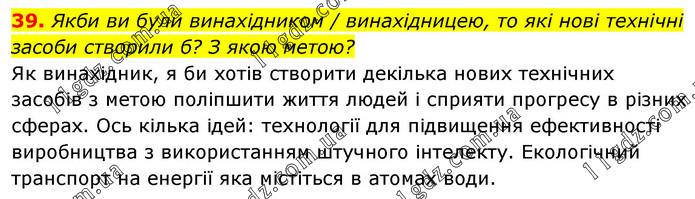 Якби ви були винахідником / винахідницею, то які нові технічні засоби створили б? З якою метою? Як винахідник, я би хотів створити декілька нових технічних засобів з метою поліпшити життя людей і сприяти прогресу в різних сферах. Ось кілька ідей: технології для підвищення ефективності виробництва з використанням штучного інтелекту. Екологічний транспорт на енергії яка містіться в атомах води.