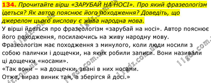Прочитайте вірш «ЗАРУБАЙ НА НОСІ». Про який фразеологізм ідеться? Як автор пояснює його походження? Доведіть, що джерелом цього вислову є жива народна мова. У вірші йдеться про фразеологізм «зарубай на носі». Автор пояснює його походження, посилаючись на живу народну мову. Фразеологізм має походження з минулого, коли люди носили з собою палички і дощечки, на яких робили записи. Вони називали ці дощечки «носами». «Так вони – на дощечки, звані в них носами. Отже, вираз виник там, а зберігся й досі.»