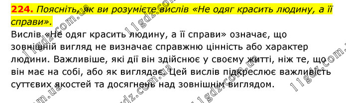 Поясніть, як ви розумієте вислів «Не одяг красить людину, а її справи». Вислів «Не одяг красить людину, а її справи» означає, що зовнішній вигляд не визначає справжню цінність або характер людини. Важливіше, які дії він здійснює у своєму житті, ніж те, що він має на собі, або як виглядає. Цей вислів підкреслює важливість суттєвих якостей та досягнень над зовнішнім виглядом.