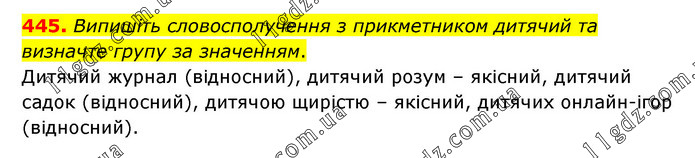 Випишіть словосполучення з прикметником дитячий та визначте групу за значенням. Дитячий журнал (відносний), дитячий розум – якісний, дитячий садок (відносний), дитячою щирістю – якісний, дитячих онлайн-ігор (відносний).