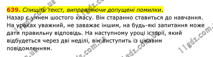 Спишіть текст, виправляючи допущені помилки. Назар є учнем шостого класу. Він старанно ставиться до навчання. На уроках уважний, не заважає іншим, на будь-які запитання може дати правильну відповідь. На наступному уроці історії, який відбудеться через дві неділі, він виступить із цікавим повідомленням.