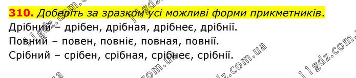 Доберіть за зразком усі можливі форми прикметників. Дрібний – дрібен, дрібная, дрібнеє, дрібнії. Повний – повен, повніє, повная, повнії. Срібний – срібен, срібная, срібнеє, срібнії.