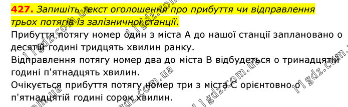 Запишіть текст оголошення про прибуття чи відправлення трьох потягів із залізничної станції. Прибуття потягу номер один з міста А до нашої станції заплановано о десятій годині тридцять хвилин ранку. Відправлення потягу номер два до міста В відбудеться о тринадцятій годині п'ятнадцять хвилин. Очікується прибуття потягу номер три з міста С орієнтовно о п'ятнадцятій годині сорок хвилин.