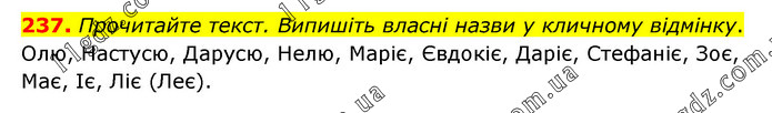 Прочитайте текст. Випишіть власні назви у кличному відмінку. Олю, Настусю, Дарусю, Нелю, Маріє, Євдокіє, Даріє, Стефаніє, Зоє, Має, Іє, Ліє (Леє).