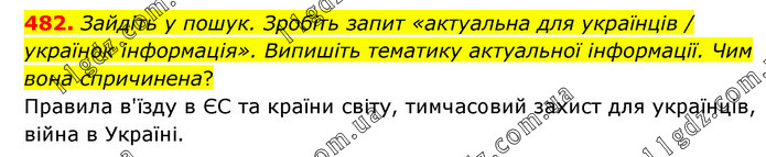 Зайдіть у пошук. Зробіть запит «актуальна для українців / українок інформація». Випишіть тематику актуальної інформації. Чим вона спричинена? Правила в'їзду в ЄС та країни світу, тимчасовий захист для українців, війна в Україні.