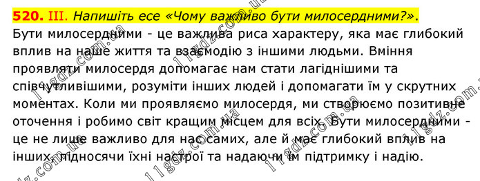 ІІІ. Напишіть есе «Чому важливо бути милосердними?». Бути милосердними - це важлива риса характеру, яка має глибокий вплив на наше життя та взаємодію з іншими людьми. Вміння проявляти милосердя допомагає нам стати лагіднішими та співчутливішими, розуміти інших людей і допомагати їм у скрутних моментах. Коли ми проявляємо милосердя, ми створюємо позитивне оточення і робимо світ кращим місцем для всіх. Бути милосердними - це не лише важливо для нас самих, але й має глибокий вплив на інших, підносячи їхні настрої та надаючи їм підтримку і надію.
