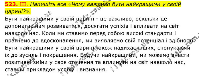 ІІІ. Напишіть есе «Чому важливо бути найкращими у своїй царині?». Бути найкращими у своїй царині - це важливо, оскільки це допомагає нам розвиватися, досягати успіхів і впливати на світ навколо нас. Коли ми ставимо перед собою високі стандарти і прагнемо до вдосконалення, ми виявляємо свій потенціал і здібності. Бути найкращими у своїй царині також надихає інших, спонукаючи їх до зусиль і покращення. Будучи найкращими, ми можемо внести позитивні зміни у своє оточення та вплинути на світ навколо нас, ставши прикладом успіху і визнання.