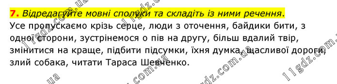 Відредагуйте мовні сполуки та складіть із ними речення. Усе пропускаємо крізь серце, люди з оточення, байдики бити, з одної сторони, зустрінемося о пів на другу, більш вдалий твір, змінитися на краще, підбити підсумки, їхня думка, щасливої дороги, злий собака, читати Тараса Шевченко.