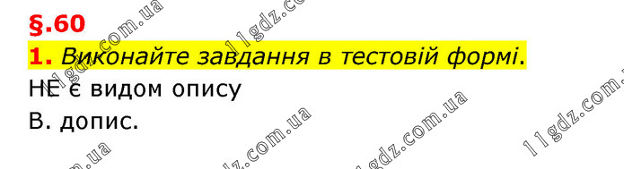 §.60 1. Виконайте завдання в тестовій формі. НЕ є видом опису В. допис.