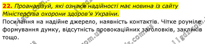 Проаналізуй, які ознаки надійності має новина із сайту Міністерства охорони здоров’я України. Посилання на надійне джерело, наявність контактів. Чітке роуміле формування думку, відсутність провокаційних заголовків, закликів тощо.