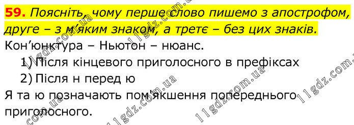 Поясніть, чому перше слово пишемо з апострофом, друге – з м’яким знаком, а третє – без цих знаків. Кон’юнктура – Ньютон – нюанс. 1) Після кінцевого приголосного в префіксах 2) Після н перед ю Я та ю позначають пом'якшення попереднього приголосного.