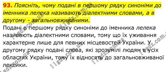 Поясніть, чому подані в першому рядку синоніми до іменника лелека називають діалектними словами, а в другому - загальновживаними. Подані в першому рядку синоніми до іменника лелека називають діалектними словами, тому що їх уживання характерне лише для певних місцевостей України. У другому рядку подані слова, які зрозумілі людям в усіх областях України, тому їх відносять до загальновживаної лексики.