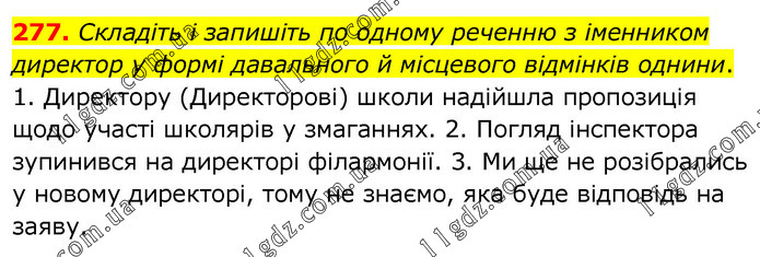 Складіть і запишіть по одному реченню з іменником директор у формі давального й місцевого відмінків однини. 1. Директору (Директорові) школи надійшла пропозиція щодо участі школярів у змаганнях. 2. Погляд інспектора зупинився на директорі філармонії. 3. Ми ще не розібрались у новому директорі, тому не знаємо, яка буде відповідь на заяву.