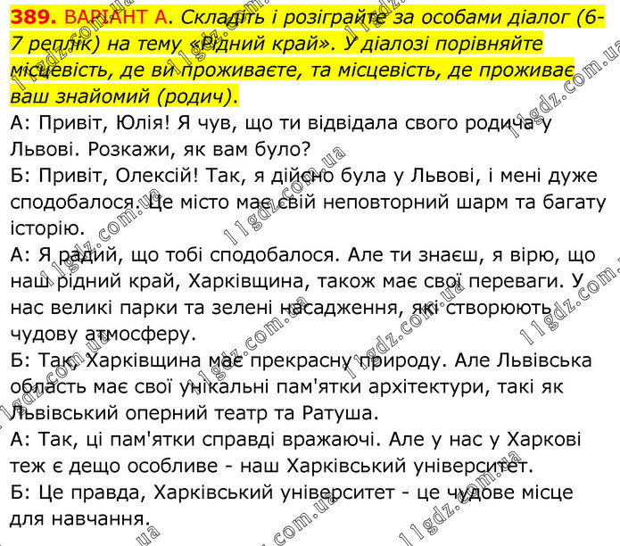 ВАРІАНТ А. Складіть і розіграйте за особами діалог (6-7 реплік) на тему «Рідний край». У діалозі порівняйте місцевість, де ви проживаєте, та місцевість, де проживає ваш знайомий (родич). А: Привіт, Юлія! Я чув, що ти відвідала свого родича у Львові. Розкажи, як вам було? Б: Привіт, Олексій! Так, я дійсно була у Львові, і мені дуже сподобалося. Це місто має свій неповторний шарм та багату історію. А: Я радий, що тобі сподобалося. Але ти знаєш, я вірю, що наш рідний край, Харківщина, також має свої переваги. У нас великі парки та зелені насадження, які створюють чудову атмосферу. Б: Так, Харківщина має прекрасну природу. Але Львівська область має свої унікальні пам'ятки архітектури, такі як Львівський оперний театр та Ратуша. А: Так, ці пам'ятки справді вражаючі. Але у нас у Харкові теж є дещо особливе - наш Харківський університет. Б: Це правда, Харківський університет - це чудове місце для навчання.