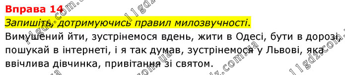 Запишіть, дотримуючись правил милозвучності. Вимушений йти, зустрінемося вдень, жити в Одесі, бути в дорозі, пошукай в інтернеті, і я так думав, зустрінемося у Львові, яка ввічлива дівчинка, привітання зі святом.