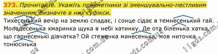 Прочитайте. Укажіть прикметники зі зменшувально-пестливим значенням. Визначте в них суфікси. Тихесенький вечір на землю спадає, і сонце сідає в темнесенький гай. Молодесенька хмаринка щука в небі хатинку. Де ота біленька хатка, що гарнесенькі дівчатка? Ой стежечка манесенька, мов ниточка тонюсінька