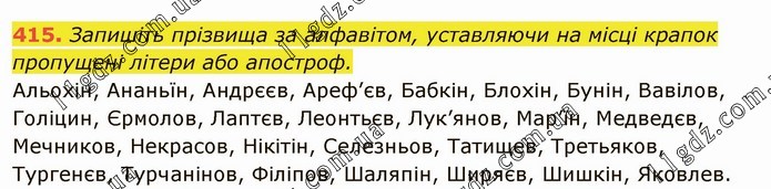 Запишіть прізвища за алфавітом, уставляючи на місці крапок пропущені літери або апостроф. Альохін, Ананьїн, Андрєєв, Ареф’єв, Бабкін, Блохін, Бунін, Вавілов, Голіцин, Єрмолов, Лаптєв, Леонтьєв, Лук’янов, Мар’їн, Медведєв, Мечников, Некрасов, Нікітін, Селезньов, Татищев, Третьяков, Тургенєв, Турчанінов, Філіпов, Шаляпін, Ширяєв, Шишкін, Яковлев.