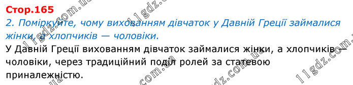 2. Поміркуйте, чому вихованням дівчаток у Давній Греції займалися жінки, а хлопчиків — чоловіки. У Давній Греції вихованням дівчаток займалися жінки, а хлопчиків — чоловіки, через традиційний поділ ролей за статевою приналежністю.