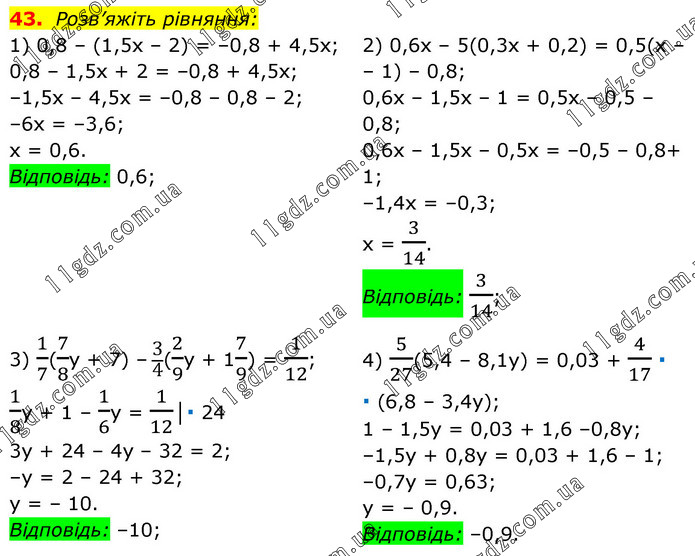 § 1. Лінійне рівняння з однією змінною » 43