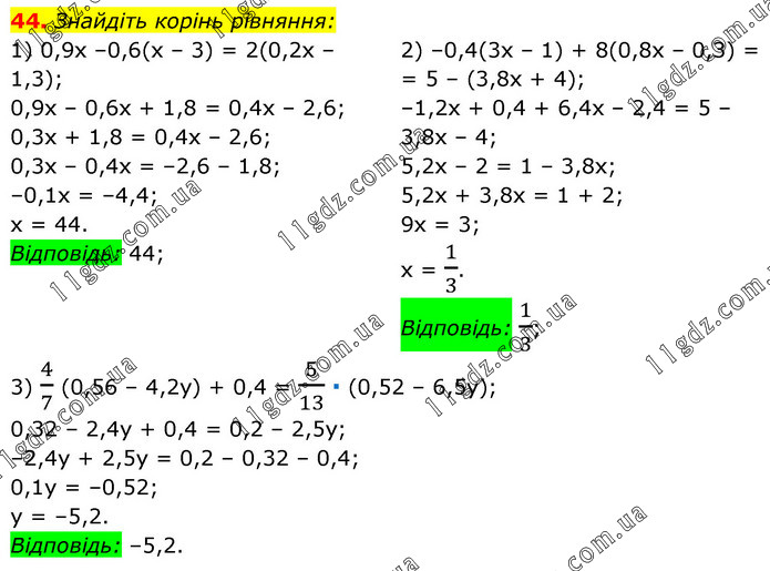 § 1. Лінійне рівняння з однією змінною » 44