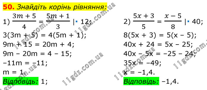 § 1. Лінійне рівняння з однією змінною » 50