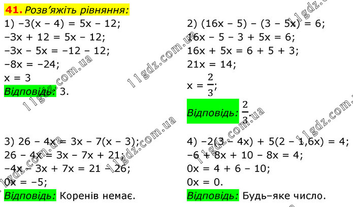 § 1. Лінійне рівняння з однією змінною » 41