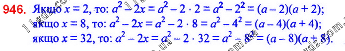 946. Знайдіть які-небудь три натуральних значення змінної x таких, щоб вираз a2 − 2x можна було розкласти на множники за форму-лою різниці квадратів. Отримані вирази розкладіть на множники.