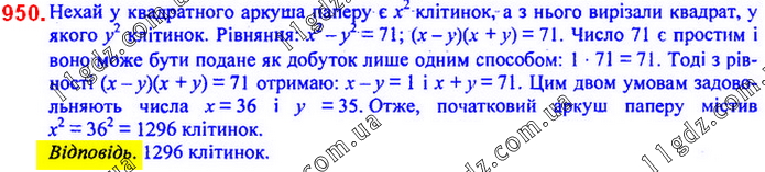 950. Із квадратного аркуша паперу в клітинку, який містить цілу кількість клітинок, вирізали по лініях квадрат, що містить цілу кількість клітинок, так, що залишилася 71 клітинка. Скільки клітинок було на початковому аркуші паперу?