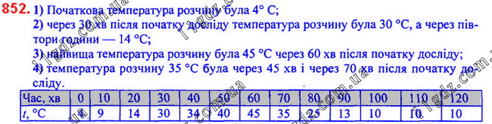 1) Якою була початкова температура розчину? 2) Якою була температура розчину через 30 хв після початку досліду; через півтори години? 3) Якою була найвища температура розчину та через скільки хвилин після початку досліду? 4) Через скільки хвилин після початку досліду температура розчину була 35 °С? Складіть за графіком таблицю зміни температури розчину через кожні 10 хв протягом перших двох годин після початку досліду.