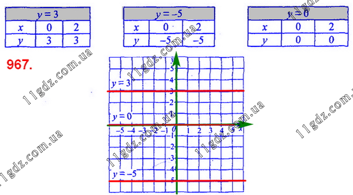 Побудуйте в одній системі координат графіки лінійних функ- цій: y = 3; y = –5; y = 0.