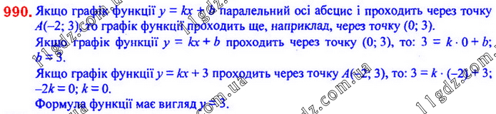 Графік функції y = kx + b паралельний осі абсцис і проходить через точку A (–2; 3). Знайдіть значення k і b.