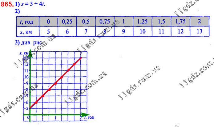 Прямолінійна дорога проходить повз туристичний табір. Турист, перебуваючи на відстані 5 км від табору, почав рухатися цією дорогою зі швидкістю 4 км/год, віддаляючись від табору. 1) Знайдіть відстань s від табору, на якій перебуватиме турист через t год після початку руху. 2) Заповніть таблицю значень s: 3) Користуючись заповненою таблицею, побудуйте графік залежності відстані до табору від часу руху.