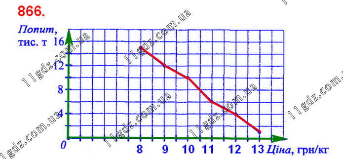 В економічних дослідженнях часто використовують криву по-питу. Крива попиту — це графік, який показує, як залежить по-пит на товар від його ціни. У таблиці наведено залежність попиту на картоплю в деякому регіоні (у тис. т) від ціни 1 кг картоплі. Подайте дані, наведені в таблиці, графічно. Сполучивши отри-мані точки відрізками, побудуйте криву попиту на картоплю.