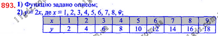 Область визначення деякої функції — одноцифрові натуральні числа, а значення функції у 2 рази більші за відповідні значення аргументу. 1) Яким способом задано цю функцію? 2) Задайте цю функцію формулою та табличним способом.