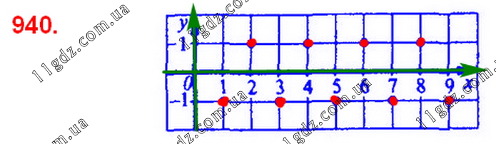 Побудуйте графік функції, областю визначення якої є всі на-туральні числа та яка набуває значення 1 при парних значеннях аргументу та значення –1 при непарних значеннях аргументу.