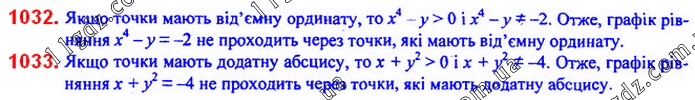 Чи належать графіку рівняння x4 – y = –2 точки, що мають від’ємну ординату? 1033.• Чи проходить графік рівняння x + y2 = –4 через точки, що мають додатну абсцису?