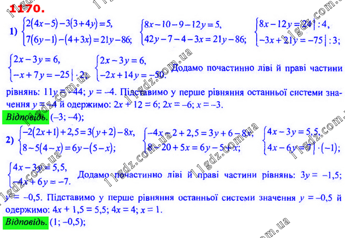 § 4. Системи лінійних рівнянь із двома змінними » 1170 (1-2)