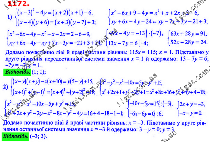 § 4. Системи лінійних рівнянь із двома змінними » 1172