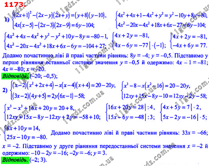 § 4. Системи лінійних рівнянь із двома змінними » 1173