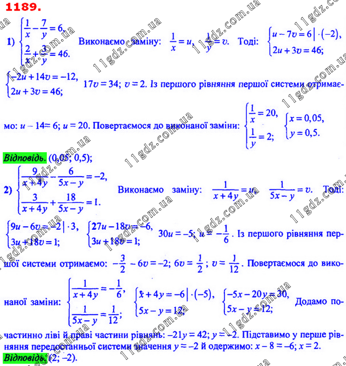 § 4. Системи лінійних рівнянь із двома змінними » 1189