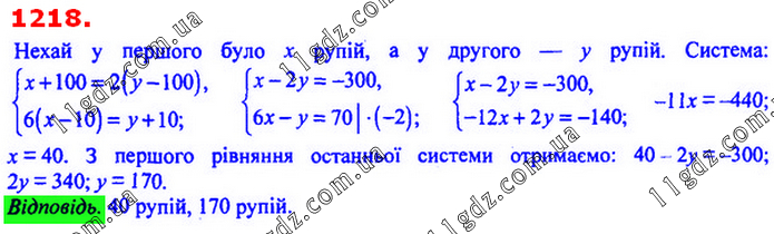 § 4. Системи лінійних рівнянь із двома змінними » 1218
