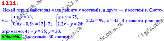 § 4. Системи лінійних рівнянь із двома змінними » 1221