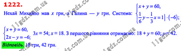 § 4. Системи лінійних рівнянь із двома змінними » 1222